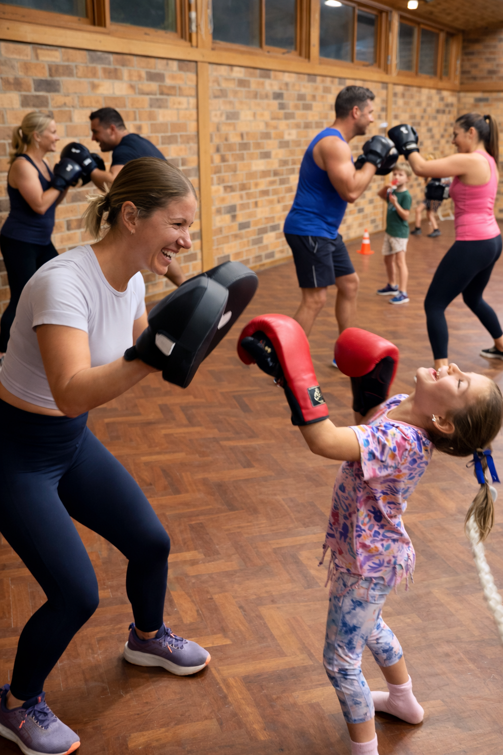 This class is very very social and a heap of fun. It includes: BOXING DRILLS, CORE & STRENGTH, ENDURANCE (or aerobic fitness).